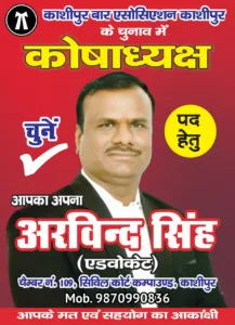 काशीपुर बार चुनाव – एड0 अरविन्द सिंह ने कोषाध्यक्ष पद के लिए किया अपना नामांकन