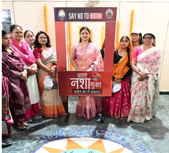 सेवा संकल्प (धारिणी) फाउंडेशन की संस्थापक ट्रस्टी श्रीमती गीता धामी ने प्रतिभागियों को सम्मानित करते हुए सामूहिक नशा मुक्ति शपथ दिलाई।