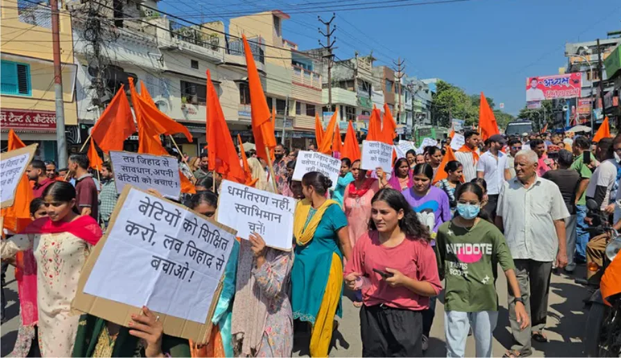 रामनगर। रामनगर में कथित लव जिहाद प्रकरण के बाद पूरे इलाके का माहौल गरमा गया है. पिछले सप्ताह घटी इस घटना के विरोध में शुक्रवार को हिंदूवादी संगठनों ने एक बड़ी जन जागरूकता आक्रोश रैली निकाली. हिंदू संगठनों ने आरोपी के घर पर बुलडोजर चलाने की मांग की है.