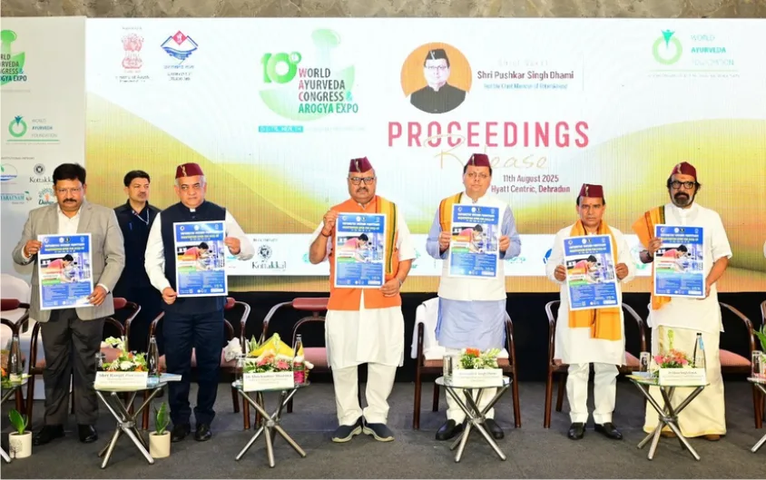 सोमवार को ओल्ड राजपुर स्थित एक होटल में 10वीं विश्व आयुर्वेद कांग्रेस एवं आरोग्य एक्सपो के प्रोसेडिंग विमोचन समारोह को संबोधित करते हुए मुख्यमंत्री श्री पुष्कर सिंह धामी ने कहा कि ये हमारे लिए अत्यंत गर्व का विषय है कि देवभूमि उत्तराखण्ड 10वीं विश्व आयुर्वेद कांग्रेस और आरोग्य एक्सपो का आयोजन करने में सफल रहा। साथ ही, अब हम उस ऐतिहासिक आयोजन की स्मृतियों और उपलब्धियों को संजोने के लिए प्रोसिडिंग का विमोचन कर रहे हैं। उन्होंने कहा कि ये मात्र एक दस्तावेज नहीं बल्कि ज्ञान, अनुभव और गहन विचार-विमर्श का सार तत्व है, जो आने वाले वर्षों में आयुर्वेद के क्षेत्र में अनुसंधान, नीति-निर्माण और जन स्वास्थ्य की दिशा तय करने में अपनी महत्वपूर्ण भूमिका निभाएगा।